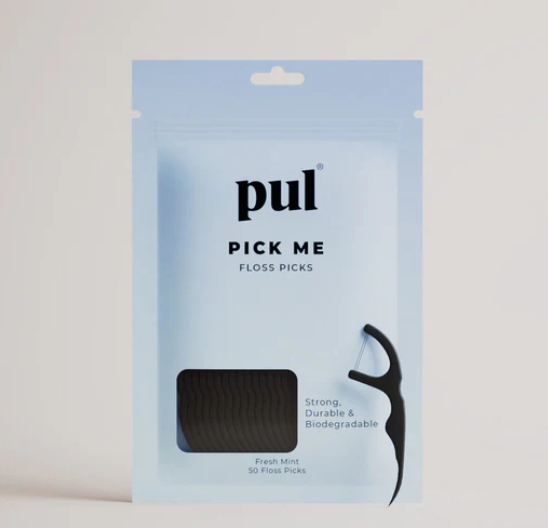 · Pick Me: Strong, minty, and charcoal-infused, biodegradable floss picks